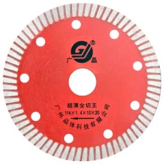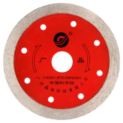 “广晶”牌石材锯片114mm干切片,节齿烧结型,专业干切石材、墙砖、石英石、混凝土、沥青、耐火砖、陶瓷等无机非金属硬脆性材料,具有锋利度高、切割手感轻松、连续干切不烧片、切割寿命长、切割面上下崩边小、切割效率高、切割安全稳定等特点。 如有任何询问请与w66最给力的老牌联系。